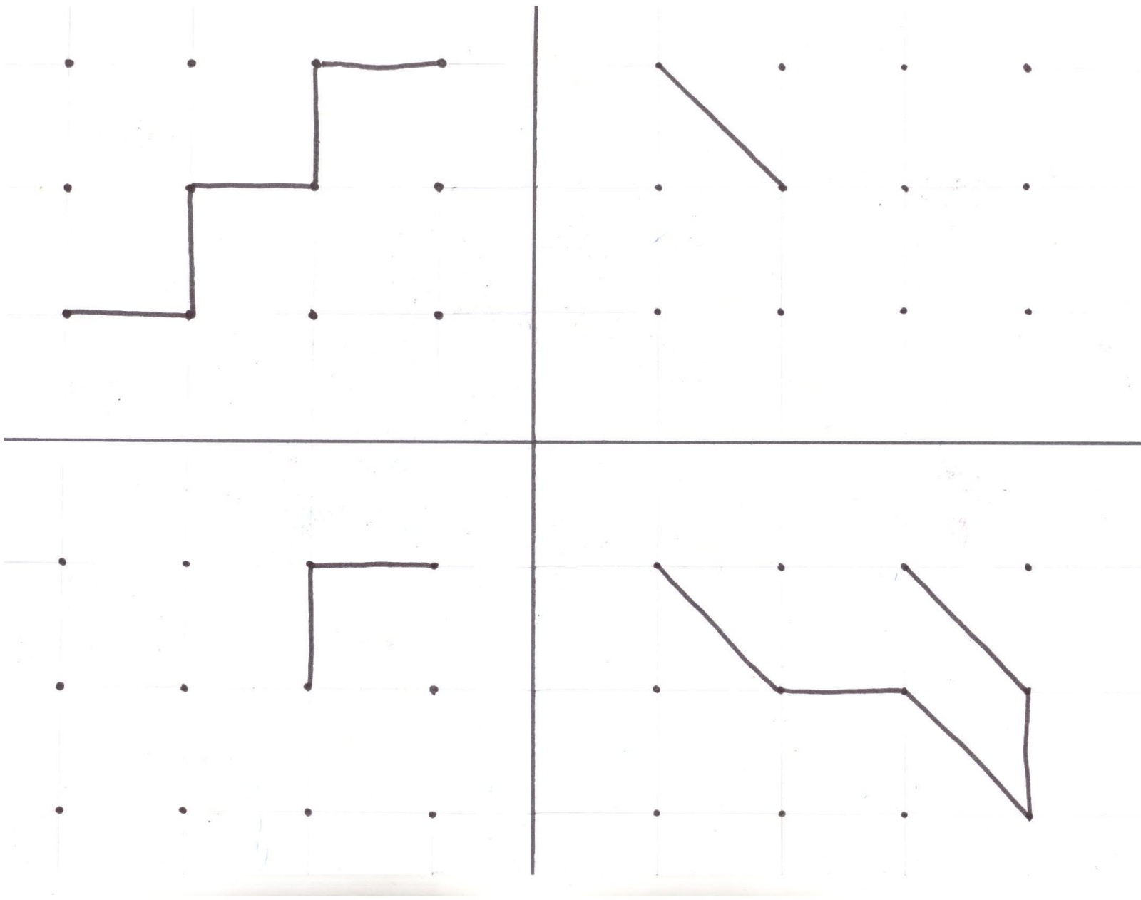 Z naszych doświadczeń wynika, że prościej odwzorowuje się linie proste i pod kątek prostym, natomiast trudniejszym zadaniem są skosy. Zadanie można dowolnie utrudniać, zwiększając liczbę kropek i stopień skomplikowania obrazka. Generalnie, na początek, warto pokazać dziecku punkt startu: np. narysować jedną z linii, by odnalazło się w przestrzeni.